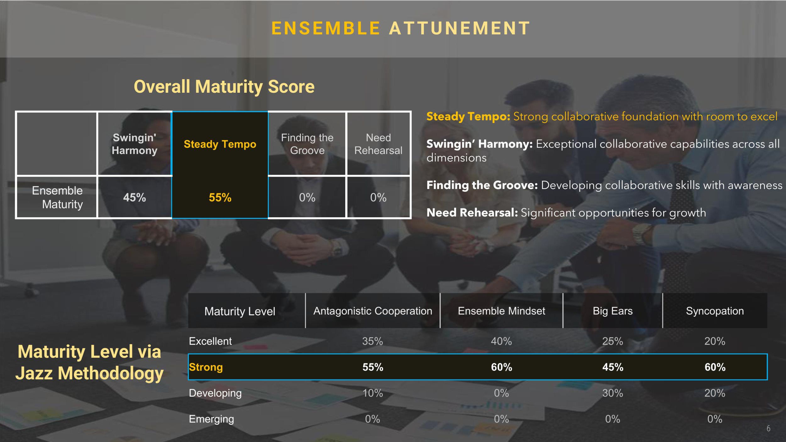 Strengthen operational continuity and team dynamics through the jazz-informed leadership and ensemble methodology.